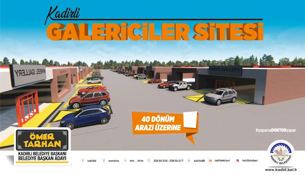 Kadirli Belediye Başkanı Dr. Ömer Tarhan tüm galericileri şehir dışına taşımak için Osmaniye Yolu Otogar Civarındaki 40 dönümlük arazinin kamulaştırmasını tamamlayarak Galericiler Sitesini burada inşa edeceğini söyledi.