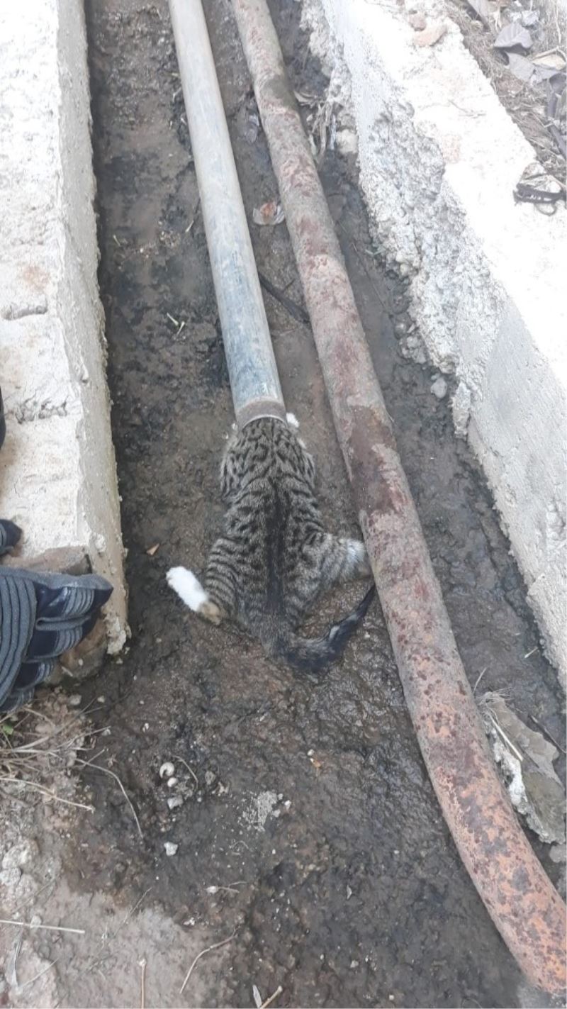 Muğla’nın Fethiye ilçesinde kafası demir boruya sıkışan yavru kedi, itfaiye ekipleri tarafından kurtarıldı.