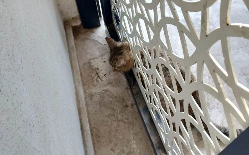 Manisa’nın Akhisar ilçesinde kafası kapıya sıkışan bir sokak kedisi Akhisar itfaiye ekipleri tarafından kurtarıldı.