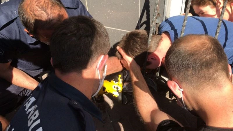 Kafası korkuluklara sıkışan çocuk böyle kurtarıldı