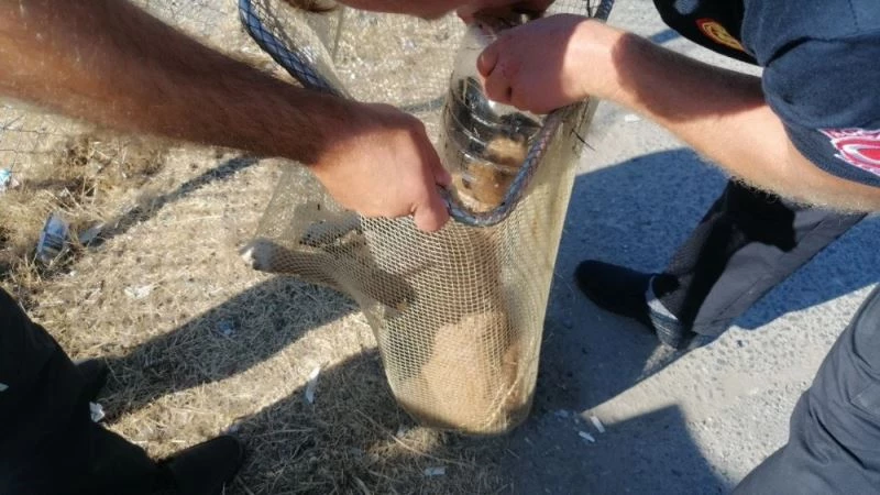 Olay, Kocaeli’nin Derince Çınarlı Mahallesi Kelebek Sokak’ta meydana geldi. Edinilen bilgiye göre, sokak üzerinde gezen bir köpeğin kafası yolda bulunan bir turşu bidonuna sıkıştı. Durumu gören vatandaşlar, nefessiz kalan köpeği kurtarmak için yardımına koştu. Kendisine yaklaşan vatandaşları gören köpek kaçmaya başladı. Gün boyunca kafasında bidon ile kaçan köpek, akşam saatlerinde kendisini kurtarmak isteyen vatandaşlar tarafından yakalandı. Vatandaşlar durumu itfaiye ekiplerine bildirdi. Kısa sürede olay yerine gelen itfaiye ekipleri, yaptıkları çalışma sonrasında köpeğin kafasını sıkıştığı bidondan kurtardı.