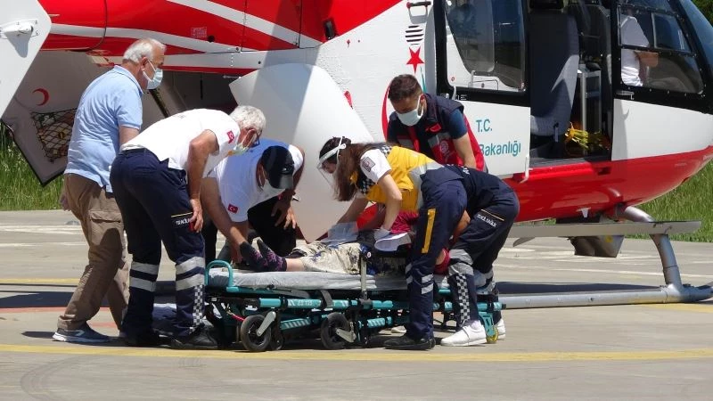 Kafasına kamyonetin arka kapağı düşen kadın ambulans helikopterle hastaneye kaldırıldı