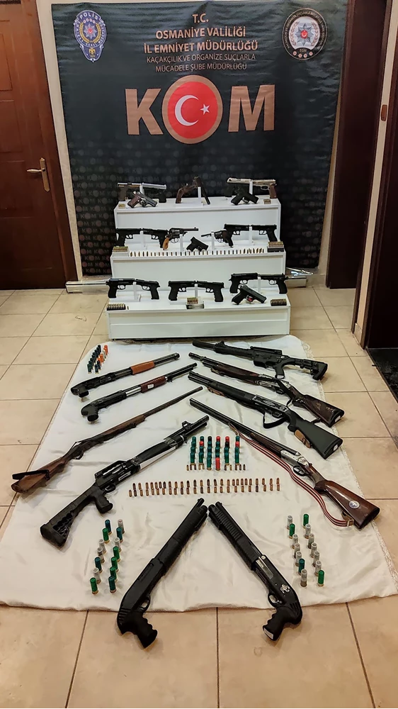 Osmaniye, Adana ve Kahramanmaraş'ta belirlenen adreslere düzenlenen operasyonda 9 ruhsatsız tabanca, 10 ruhsatsız av tüfeği, 5 kurusıkı tabanca ile bu silahlara ait mermi ve fişekler ele geçirildi, 26 şüpheli gözaltına alındı.
