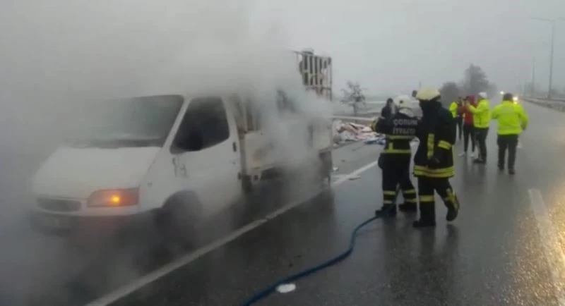 Olay, Çorum-Samsun karayolu Kaymakçı mevkiinde meydana geldi. Edinilen bilgiye göre Mert Atak idaresindeki 55 BP 884 plakalı karton yüklü kamyonetin kasa bölümünde seyir halindeyken yangın çıktı. Kartonların tutuştuğunu fark eden sürücü, aracını yol kenarında durdurarak itfaiye ekiplerine haber verdi. İhbar üzerine olay yerine gelen Çorum Belediyesi itfaiye ekiplerinin müdahalesiyle alevler kontrol altına alınarak söndürüldü.