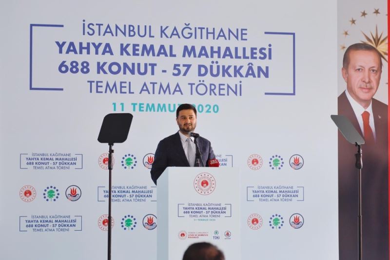 Geçtiğimiz yıl Kağıthane Yahya Kemal Mahallesi’nde bir binanın çökmesi sonucu mahalle kentsel dönüşüme alınmıştı. Mahallede inşa edilecek 688 konut ve 57 dükkanın temel atma töreni düzenlenen programla gerçekleştirildi. Törene Çevre ve Şehircilik Bakanı Murat Kurum, Toplu Konut İdaresi Başkanlığı (TOKİ) Başkanı Ömer Bulut, Kağıthane Belediye Başkanı Mevlüt Öztekin ve vatandaşlar katıldı. Çevre ve Şehircilik Bakanı Murat Kurum, Kağıthane’de yatay mimari anlayışına sahip çok güzel bir yaşam alanı inşa ettiklerini söyleyerek; 2021 yılında hedeflerinin İstanbul’da 100 bin konutu dönüştürmek olduğunu vurguladı. Konuşmaların ardından Bakan Kurum ve protokol önlerindeki butona basarak çalışmaları başlattı.