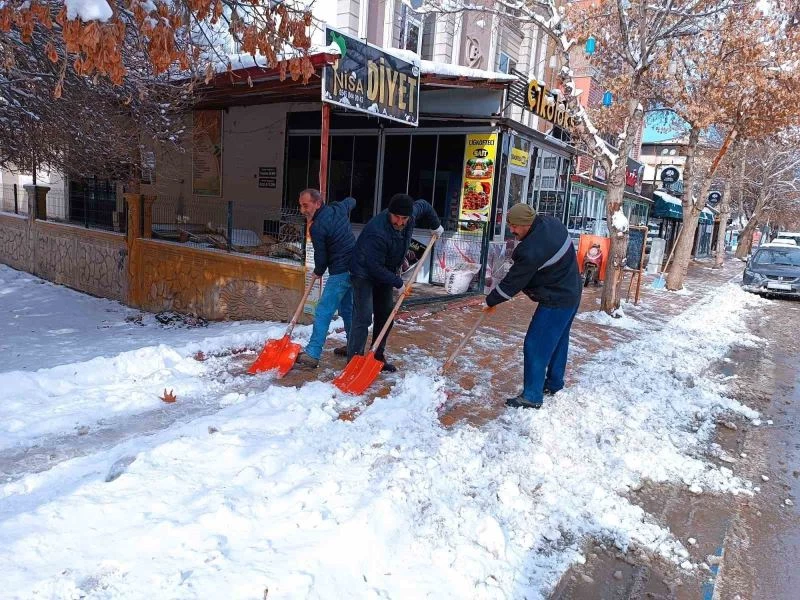 Sabah saatlerinde işyerlerini açan esnaflar, dükkanlarının önünü temizleme telaşına düşerken Elbistan Belediyesi ekipleri de yollarda ve kaldırımlarda kar temizliği yaptı. Kahramanmaraş Büyükşehir Belediyesi Kuzey İlçeler Dairesi ekipleri de, yoğun kar yağışı nedeniyle kapanan 4 kırsal mahalle yolunu açtı.