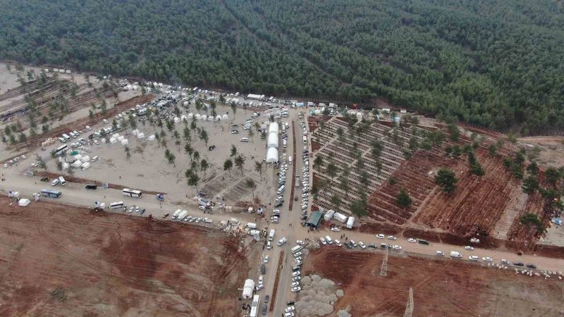 Depremde hayatını kaybeden ve Kahramanmaraş şehir merkezindeki Kapıçam Mezarlığı’nda defnedilenlerin sayısı 5 bine ulaşırken, yaşanan yoğunluk ve çalışmalar İHA dronu tarafından görüntülendi. Mezardaki işlemler koordinasyon halinde seri bir şekilde gerçekleştiriliyor. Cenaze araçların biri gidip birisi geliyor.