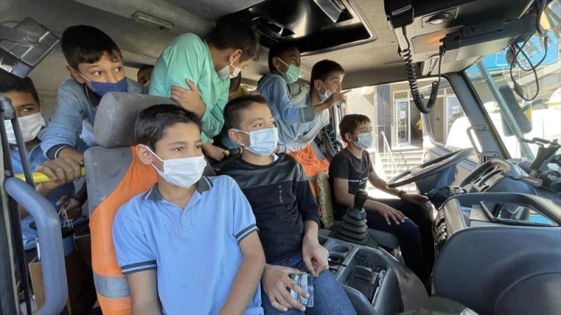 Öğrenciler, yangın komuta merkezi aracı ve arazözlere binerek orman işçilerinin yangına müdahale ederken kullandığı teknolojik ve mekanik cihazları yakından inceledi.