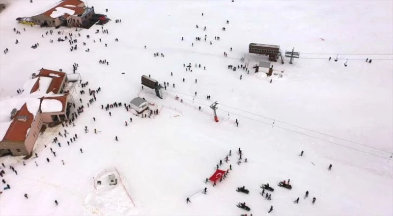 Milli Mücadele kahramanlarının anıldığı etkinlikte "İstiklal ilham verir" ve "Tüm şehitlerimizi rahmet ve minnetle anıyoruz" yazılı pankart taşıyan ekipler, jandarmanın sirenleri eşliğinde tesislerin bulunduğu alana kadar kayak yaptı.