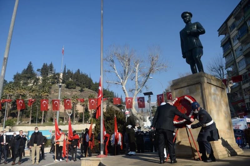 Kahramanmaraş Valisi Ömer Faruk Coşkun, Büyükşehir Belediye Başkanı Hayrettin Güngör ve Garnizon Komutanı Tuğgeneral Mehmet Emin Terzioğlu, Atatürk Meydanı'ndaki anıta çelenk sundu.