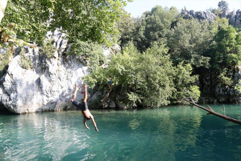 KAHRAMANMARAS (AA) - ISMAIL HAKKI DEMIR - Kahramanmaras'in Andirin ilçesindeki Kanlibüvet Kanyonu, turkuaz rengindeki soguk suyu, çevresindeki bitki örtüsü ve sicak yaz günlerinde serinlemek isteyenler için ugrak yeri oldu.
