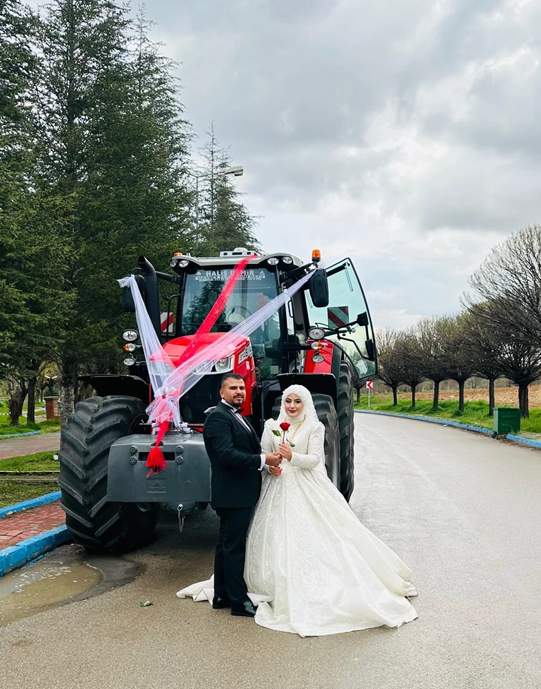 Kırsal Çoğulhan Mahallesi'nde yaşayan Kemal Sönmez (23) ve Fadime Ölker (21) çiftçilikte kullandıkları traktörü gelin arabası yapmaya karar verdi.