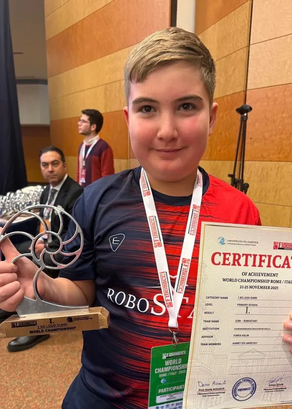 Kentte özel bir ilkokulda öğrenim gören 4'üncü sınıf öğrencisi Ahmet Efe Akkeçeci, Roma'da 12 ülkenin katılımıyla düzenlenen Fibonacci Uluslararası Robot Olimpiyatları'nda "1 Kilogram LEGO Sumo" kategorisinde rakiplerini geride bırakarak bireysel olarak birincilik ödülü kazandı.
