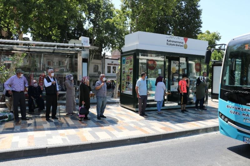 Kentte duraklarda sosyal mesafeye dikkat eden ve maske takan vatandaşların toplu taşıma araçlarında kurallara uydukları gözlendi.