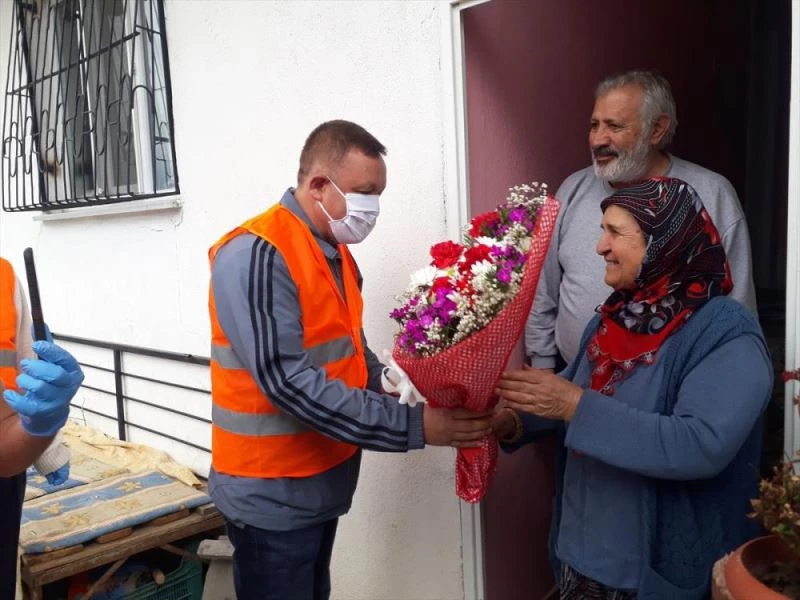Bunun üzerine Andirin Vefa Sosyal Destek Grubu, pasta ve çiçekle Çelikten çiftinin kapisini çalarak sürpriz yapti.