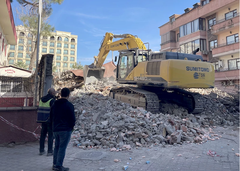 "Asrın felaketi" olarak nitelenen 6 Şubat depremlerinin merkez üssü olan kentte, Dulkadiroğlu ilçesine bağlı Yenişehir Mahallesi'ndeki 3 katlı ağır hasarlı bina iş makineleriyle yıkıldı.