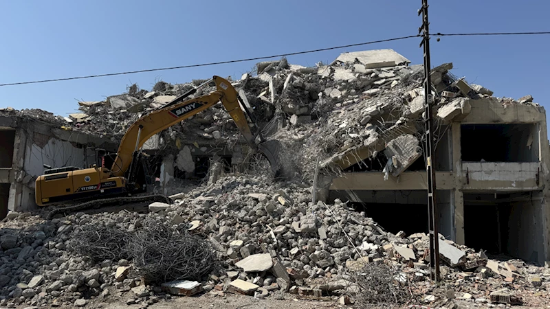 Yıkılan binaların enkazı ise iş makineleri yardımıyla taşınıyor.