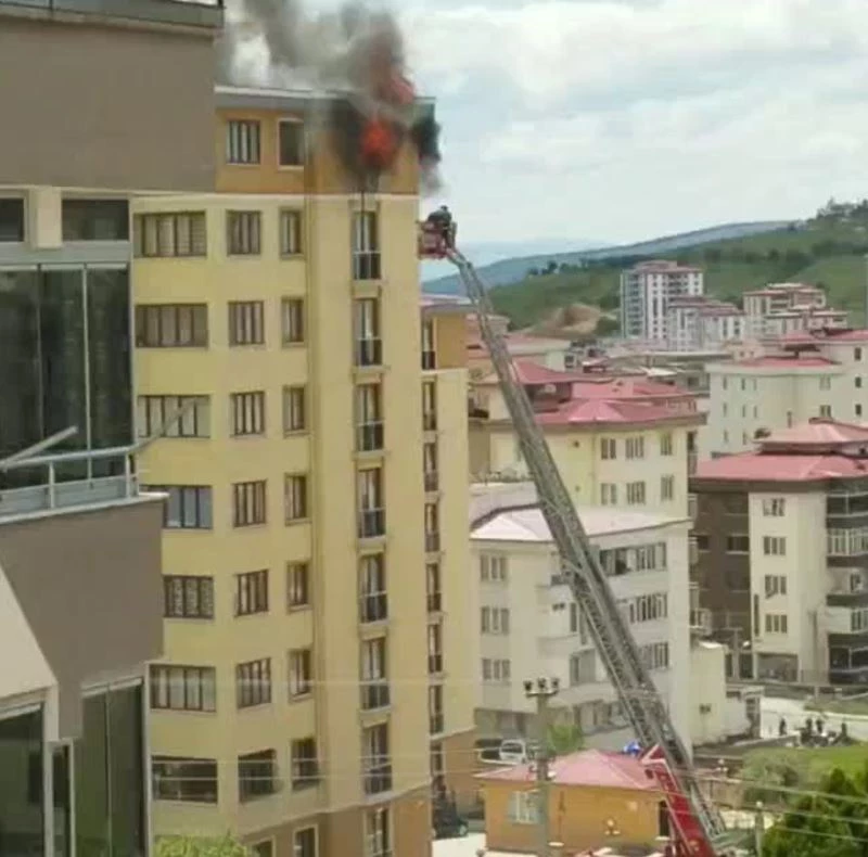 Büyüksehir Belediyesi itfaiye ekipleri, yangin merdiveniyle 9. kata ulasarak yangini kisa sürede söndürdü.