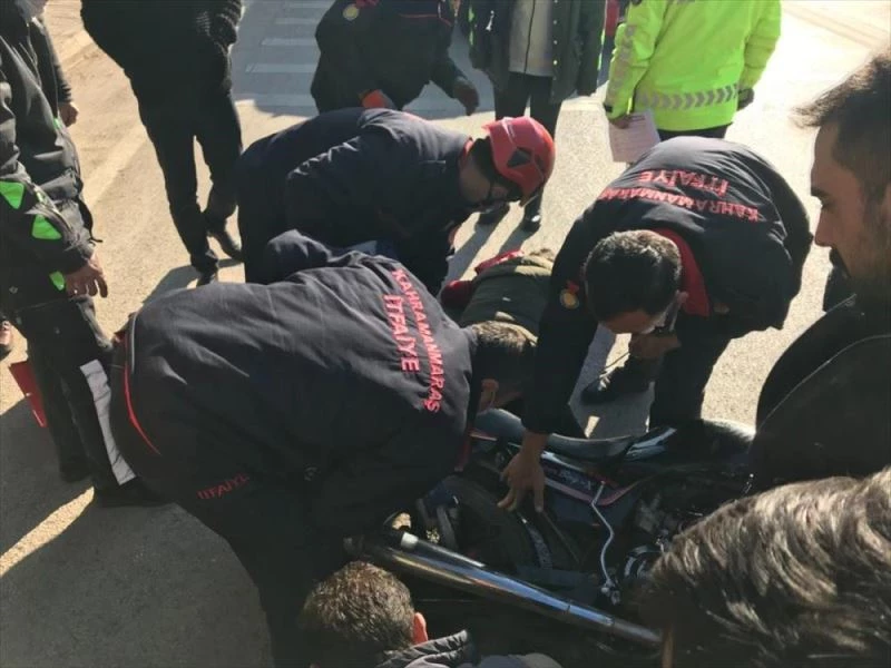 Sürücü Ahmet D'nin ayağı motosikletin arka jantına sıkıştı. Çevredekilerin ihbarı üzerine olay yerine 112 Acil Sağlık ile Kahramanmaraş Büyükşehir Belediyesi itfaiye ekipleri sevk edildi.