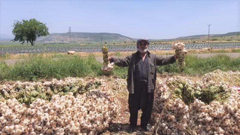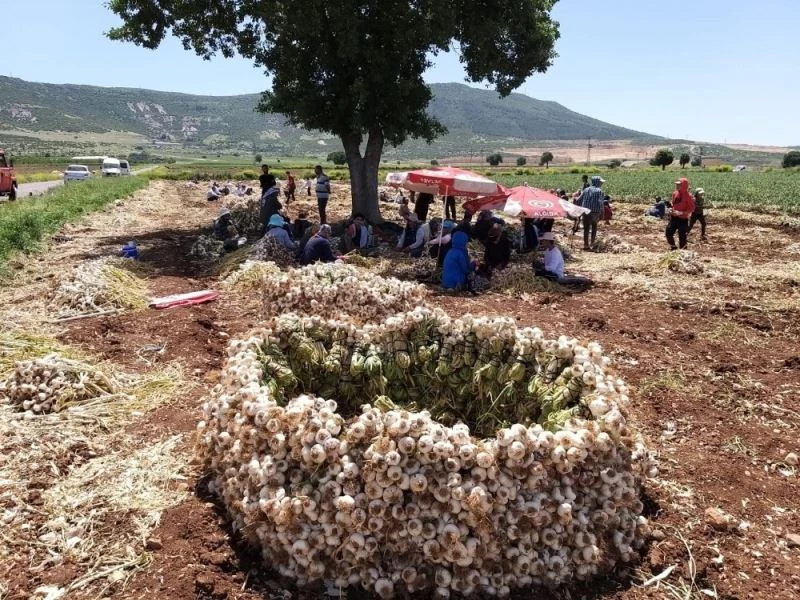 Kahramanmaraş’ta hasadına başlanan sarımsağın tarlada 15 liraya alıcı bulması çiftçinin yüzünü güldürdü.
