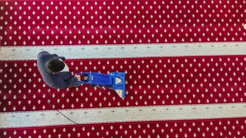 Bu kapsamda görevliler, camilerin iç mekanlarında bulunan halı, ayakkabılık, kapı, duvar ve camları temizledi.