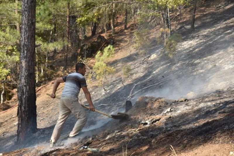 Yaklaşık 2 hektar alanın zarar gördüğü bölgede soğutma çalışması sürüyor.