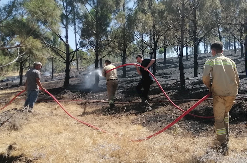 Yaklaşık 2 hektar ormanlık alanın zarar gördüğü bölgede soğutma çalışmaları sürüyor.