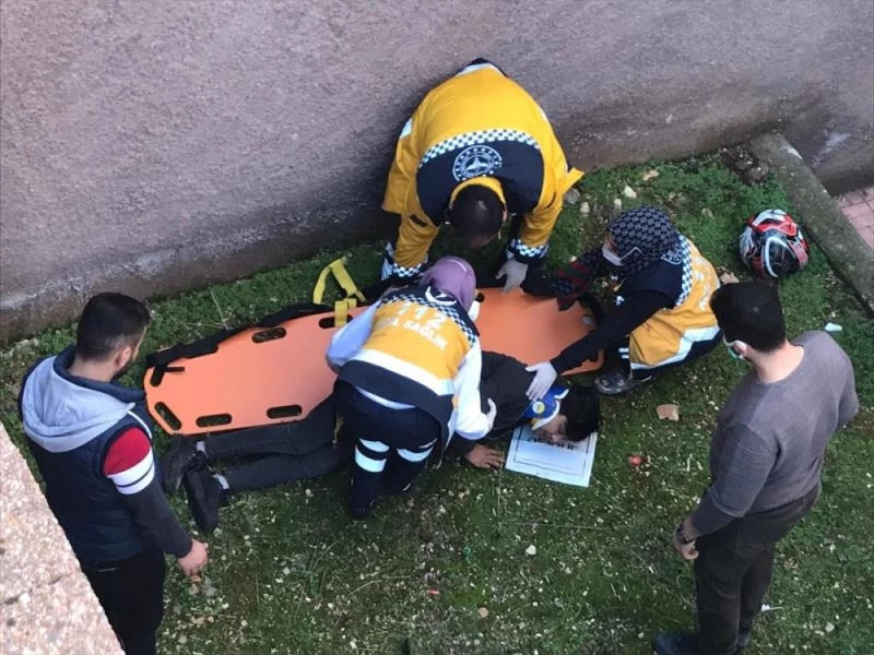 Polisin "dur" ihtarına uymayarak kaçan sürücü, yakalanacağını anlayınca motosikleti yol ortasında bırakıp bir binanın istinat duvarından atlamak istedi.