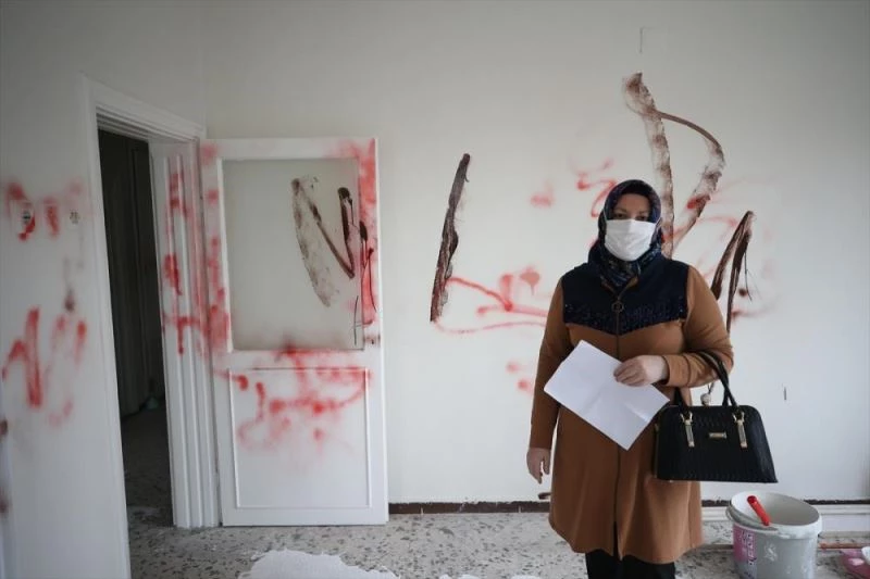 Bahçelievler Mahallesi'nde ev satın alan S.K, tapu işlemlerinin ardından eve geldiğinde dolap, kapı ve duvarlara sprey boyayla zarar verildiğini gördü.
