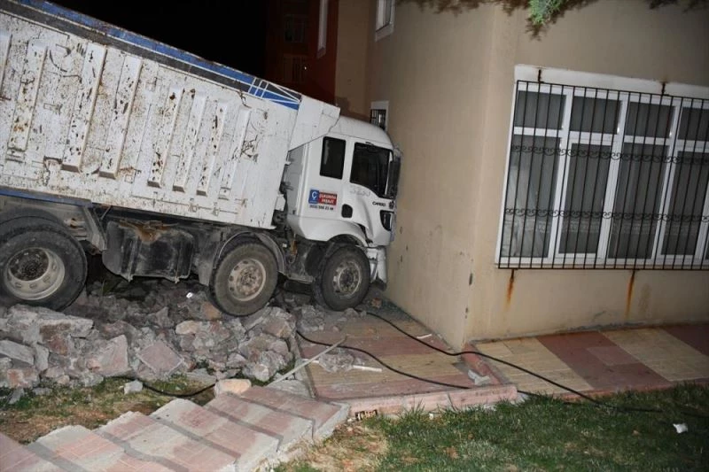 Kontrolden çıkan kamyon yaklaşık 45 metre gittikten sonra bir sitenin bahçe ve apartman duvarına çarparak durabildi. Çarpmanın etkisiyle hasar oluştu.