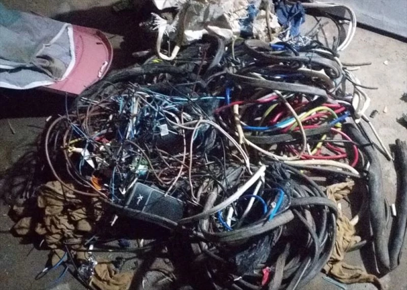 Gözaltına alınan şüphelilerin yanlarında bir miktar kablo ele geçirildi.