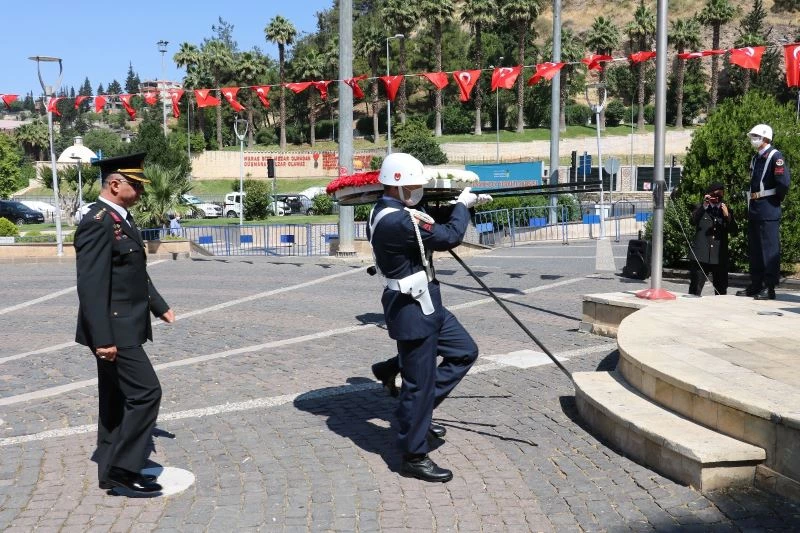 Atatürk Meydanında düzenlenen tören, korona virüs tedbirleri kapsamında maske ve sosyal mesafe kuralları çerçevesinde gerçekleştirildi. Törende İl Jandarma Komutanı Albay Numan Öksüz, Atatürk anıtına çelenk bıraktı.