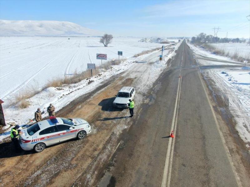 Ağırlaşan kış şartlarında meydana gelmesi muhtemel trafik kazalarının önlenmesi amacıyla uygulama yapan ekipler, durdurulan sürücüleri, emniyet kemerlerini takmaları ve aşırı hız yapmamaları konusunda uyarılarda bulundu.