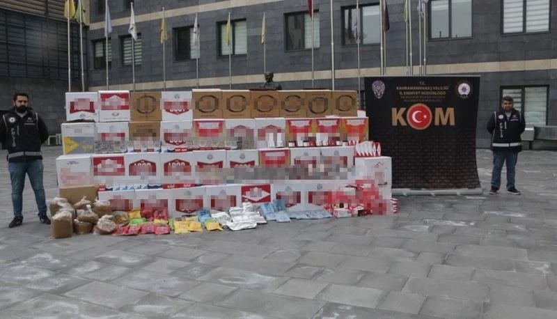 Kahramanmaraş’ta düzenlenen kaçakçılık operasyonunda piyasa değeri yaklaşık 1 milyon lira olan boş ve doldurulmuş makaron ile değişik markalarda nargile tütünü ele geçirildi.