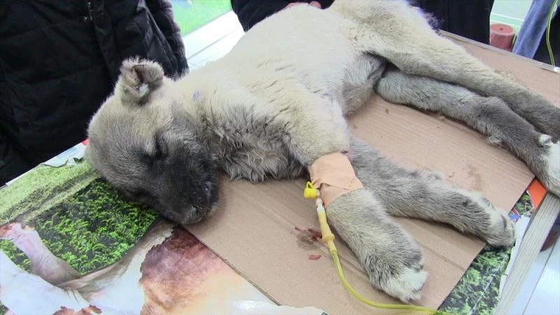 Veteriner Hamit Çoban, bitkin haldeki köpeğin tedaviyle hayata döndürüldüğünü söyledi.