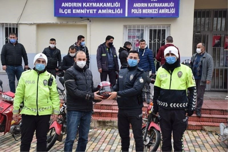 Kahramanmaraş’ta ‘Bir Kask Bir Hayat’ projesi kapsamında motosiklet sürücülerine kask hediye edildi.
