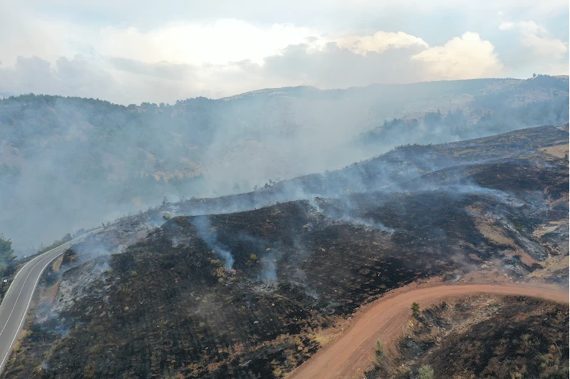Yaklaşık 3 saatlik çalışmanın ardından kontrol altına alınan yangın bölgesinde, soğutma çalışmalarına devam ediliyor.