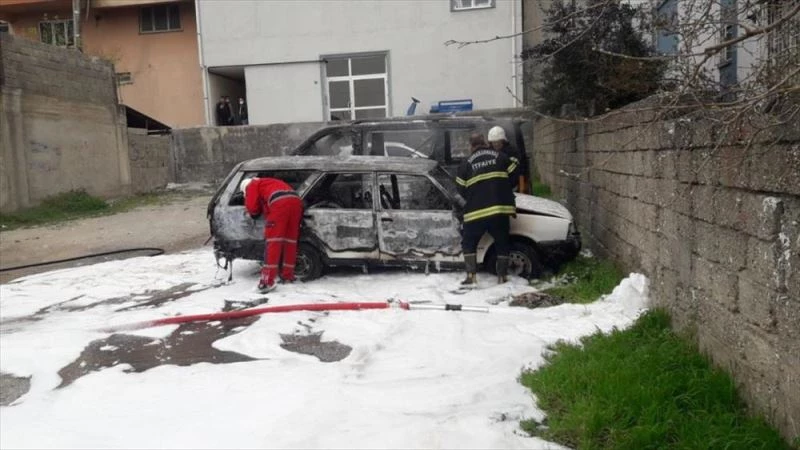 İtfaiye ekiplerince söndürülen yangında 2 araç kullanılamaz hale geldi.