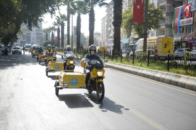 PTT Kahramanmaras Basmüdürlügü önünde toplanan kurum araçlari, kent merkezinde tur atarak Trabzon Caddesi boyunca konvoy yapti.