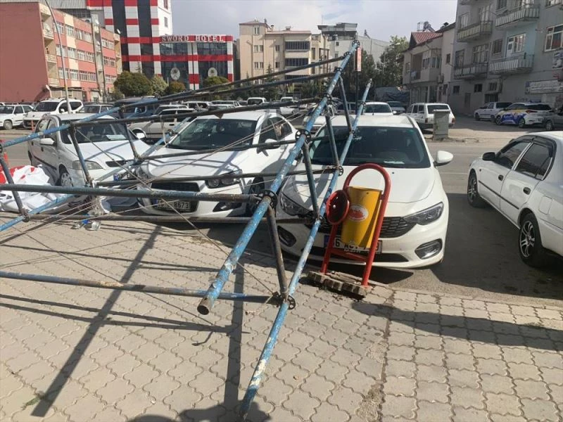 KAHRAMANMARAS (AA) - Kahramanmaras’in Elbistan ilçesinde siddetli rüzgar nedeniyle bir is merkezinin dis cephe yenilemesi için kurulan iskele devrildi.