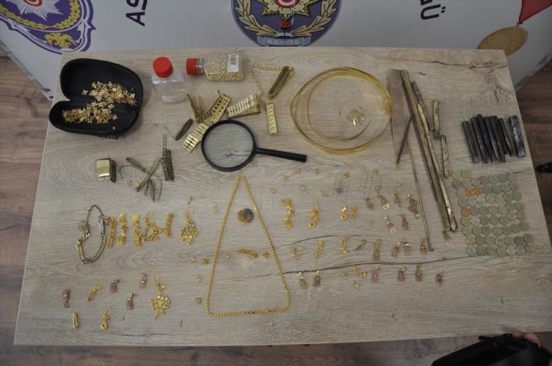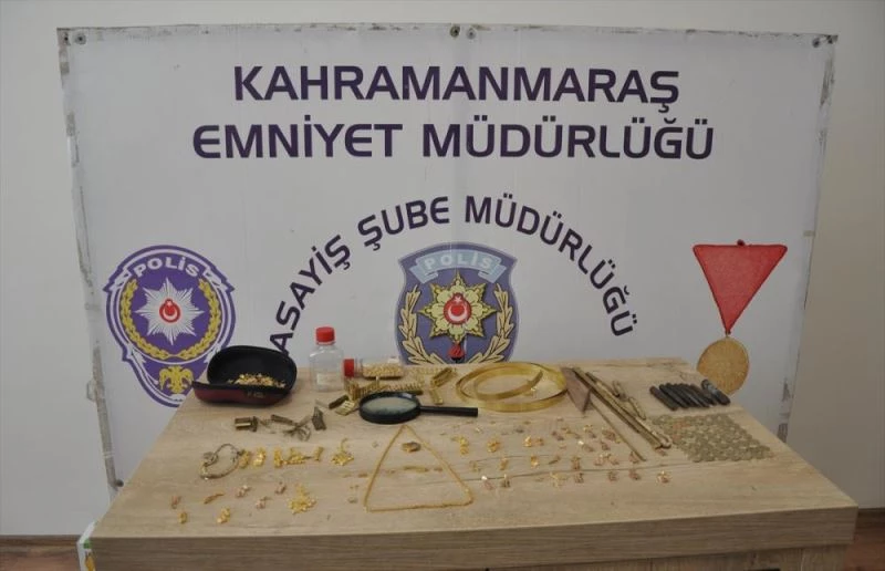 Dulkadiroglu ilçesi Ismet Pasa Mahallesi'ndeki bir is yerine operasyon düzenleyen ekipler, bakir maddeler, çok sayida döküm mühür kalibi, zincir kolye, agirlik olarak kullanilan madeni paralar, büyüteç, altin parçalari, numaratörler, metal çubuklar ve yassi plaklar ele geçirdi.