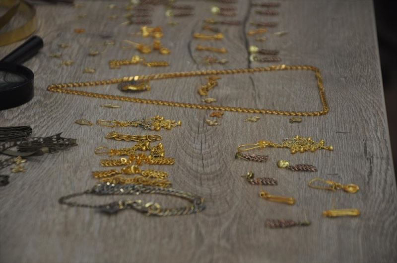 Is yerinde az miktarda altin tozu karistirilarak sahte altin taki üretildigi, takilarin komisyon karsiligi il merkezi ve diger illere satildigi tespit edildi.