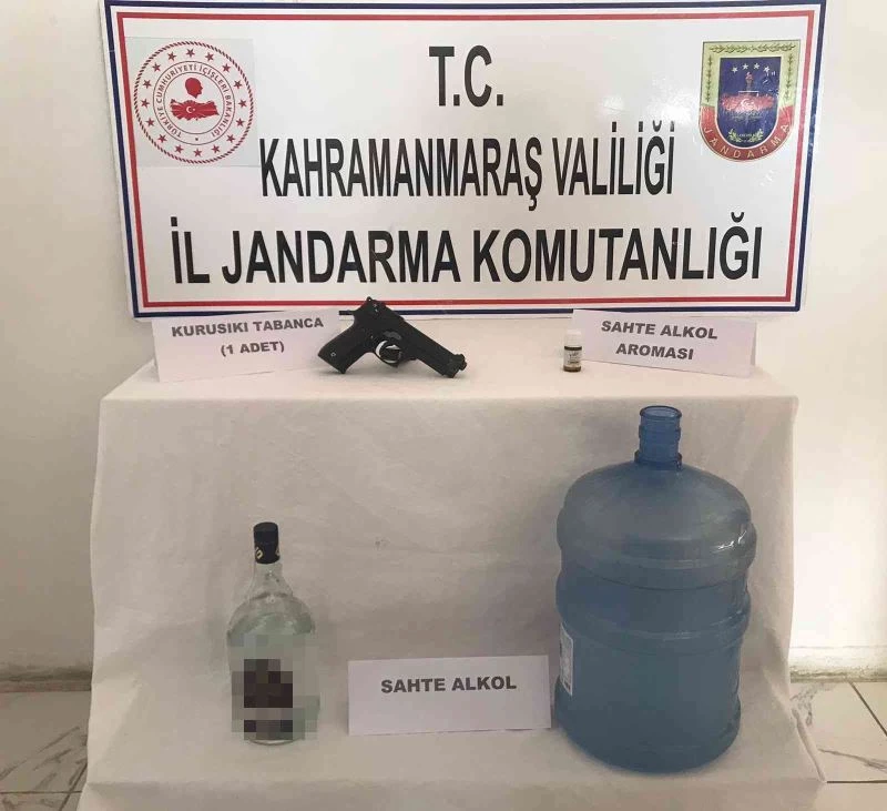 Edinilen bilgiye göre, Afşin ilçesi Emirilyas Mahallesi’nde H.İ.Y.’nin evinde sahte içki olduğu bilgisini alan Afşin İlçe Jandarma Komutanlığı ekipleri, Afşin Cumhuriyet Başsavcılığı koordinesinde çalışma başlattı. Belirlenen adreste yapılan aramada damacana içerisinde 19 litre sahte alkol, anason aroması, etil alkol şişesi ve kurusıkı tabanca ele geçirdi. Gözaltına alınan H.İ.Y. hakkında adli işlem başlatıldı.