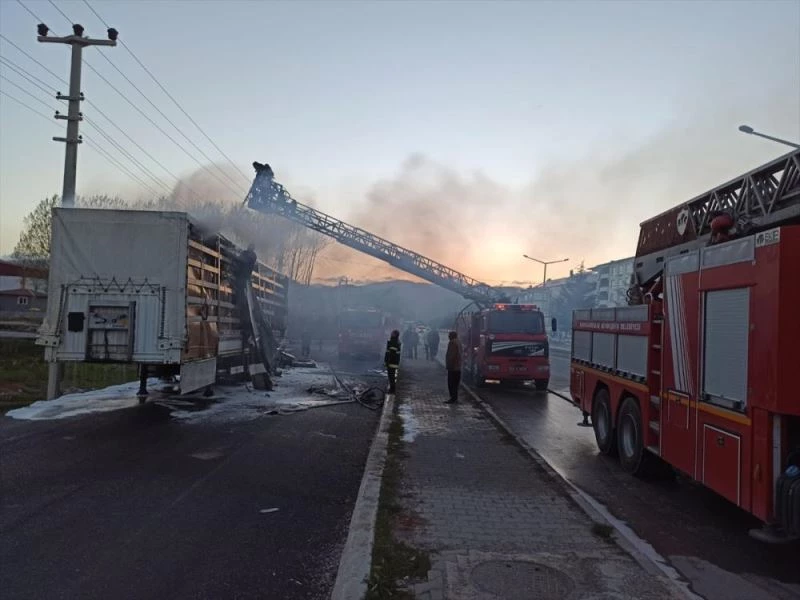 Sürücüsünün ismi öğrenilemeyen çelik kapı yüklü 33 BVK 06 plakalı tırın dorsesinde, Kayseri - Göksun kara yolunda henüz belirlenemeyen bir sebeple yangın çıktı.