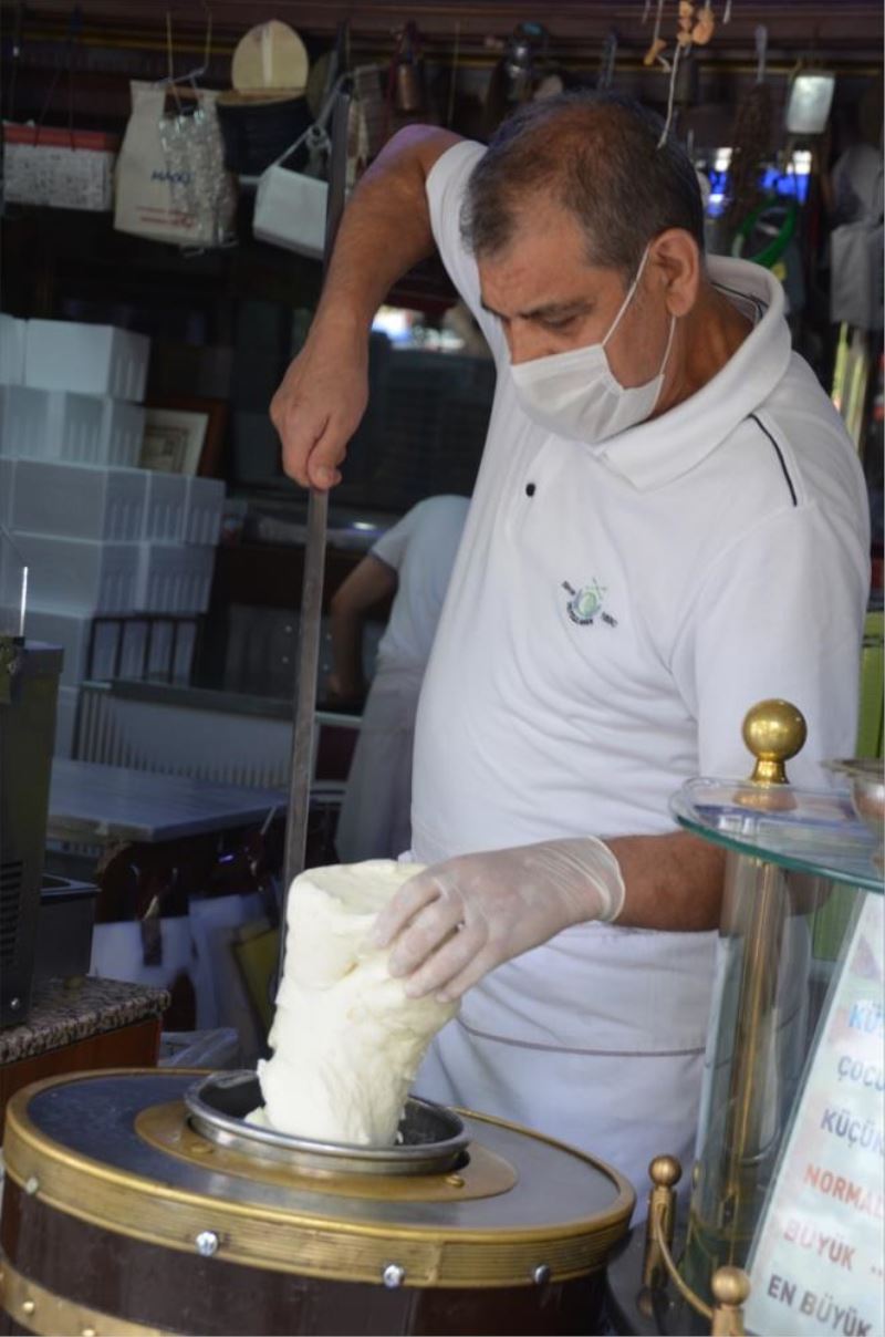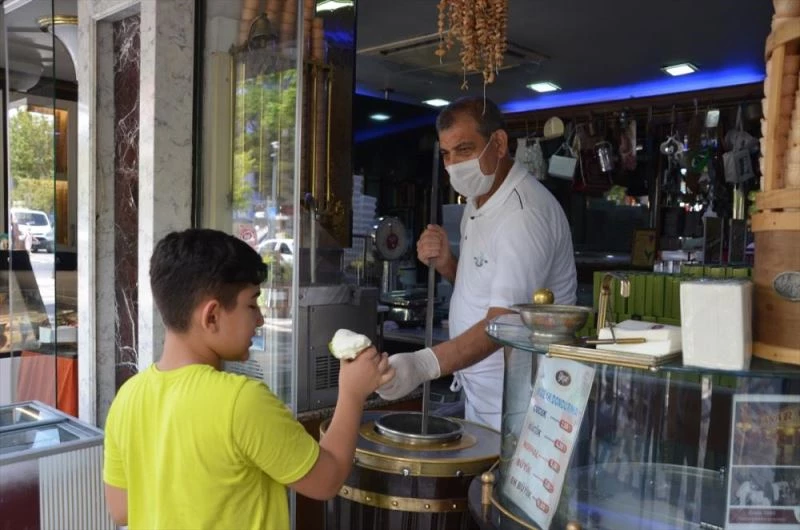 Dondurmacı Erdal Kanbur, sıcakların artmasıyla dondurmaya olan ilginin arttığını, süt, salep ve şekerden oluşan hakiki Maraş dondurmasının da besleyici özelliğinin bulunduğunu söyledi.