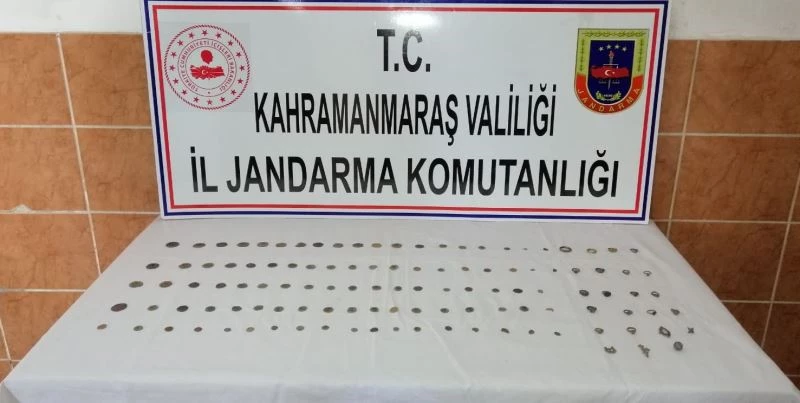 Afşin ilçesi Başüstü Mahallesinde yapılan operasyonda Roma dönemine ait olduğu değerlendirilen 92 adet tarihi eser niteliğindeki sikke, 18 adet tarihi eser niteliğinde yüzük, 5 adet tarihi eser niteliğinde obje ele geçirildi.