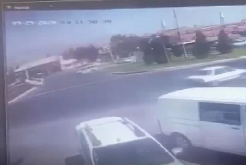 Kaza anı ise çevredeki bir iş yerinin güvenlik kamerasına yansıdı.