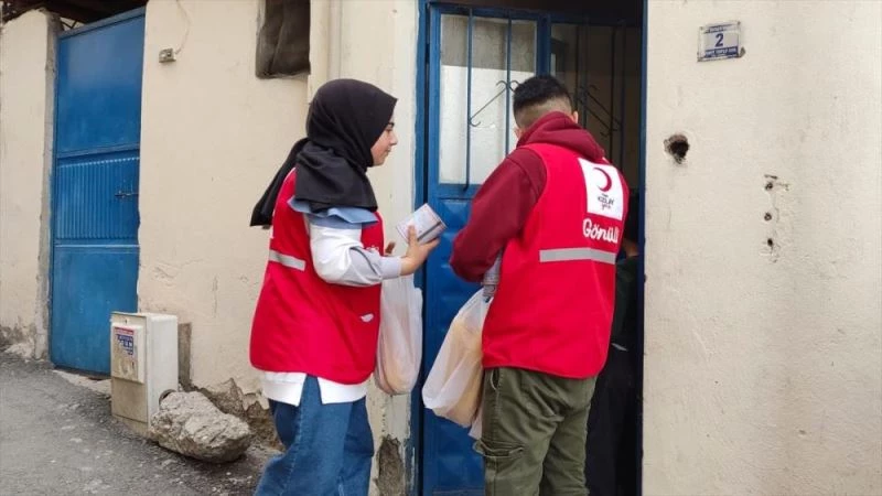 Hayırsever vatandaşların destekleriyle gerçekleştirilen yardımda, Kızılay gönüllüleri evleri dolaşarak vatandaşlara ekmek ve temek gıda malzemesi dağıttı.