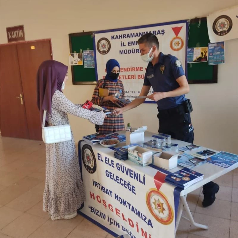 Kahramanmaraş Sütçü İmam Üniversitesi Afşin Meslek Yüksekokulu bahçesinde stant açan Afşin İlçe Emniyet Müdürlüğü Toplum Destekli Polislik Büro Amirliği ekipleri, öğrencilere uyuşturucu ile mücadele kapsamında hazırlanan mobil uygulamanın nasıl ve hangi durumlarda kullanılması gerektiğini anlattı.