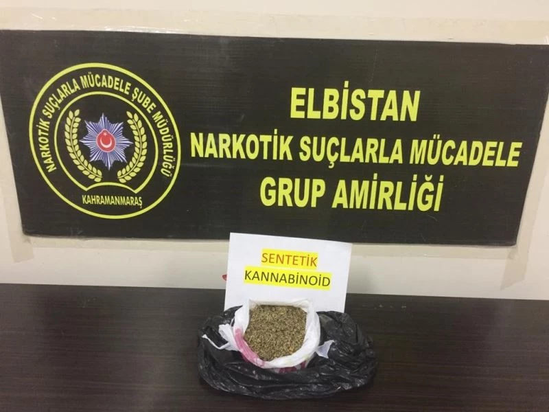 İlçe Emniyet Müdürlüğü Narkotik Suçlarla Mücadele Grup Amirliği ekipleri, uyuşturucu ve uyuşturucu ticaretine yönelik olarak yaptıkları çalışmada; Elbistan-Nurhak karayolunda bir aracı şüphe üzerine durdurdu. Araçtaki 2 şahsın üst aramasını yapan narkotik ekipleri, 153 gram bonzai adlı uyuşturucu madde ele geçirdi. Y.K. ve İ.E.P. adlı şüpheliler, işlemleri için emniyete götürdü. Şüpheliler, buradaki işlemlerinin ardından adliyeye sevk edildi. Burada Sulh Ceza Hakimliği’nde hakim karşısına çıkarılan şüpheliler, uyuşturucu madde ticareti yapmak suçundan tutuklanarak Elbistan E Tipi Kapalı Ceza İnfaz Kurumu’na gönderildi.